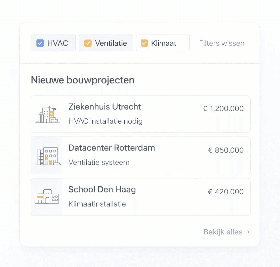BouwSignaal stuurt installatiebedrijven elke week signalen van nieuwe utiliteitsbouwprojecten waar HVAC-installaties nodig kunnen zijn.